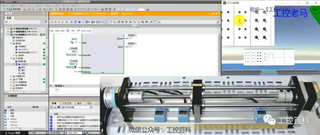 第五部分 过程控制:逻辑控制及过程控制。        讲解PLC编程的方法以及编程思路(利用3D软件掌握调试大型现场的编程方法及经验),使得编程简洁可读性高便于程序扩展及改动,以及编码器的使用方法、过程控制中的PID用法及自整定(使用3D软件模拟的真实被控对象调试PID)。