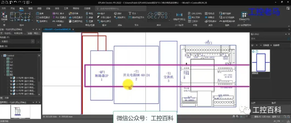 第一部分 图纸设计:EPlan电气图纸设计学习。        掌握电气自动化元器件使用、绘制控制柜体布置图、电源回路、模块原理图、主回路图、二次回路图、端子图、PLC接线实践。